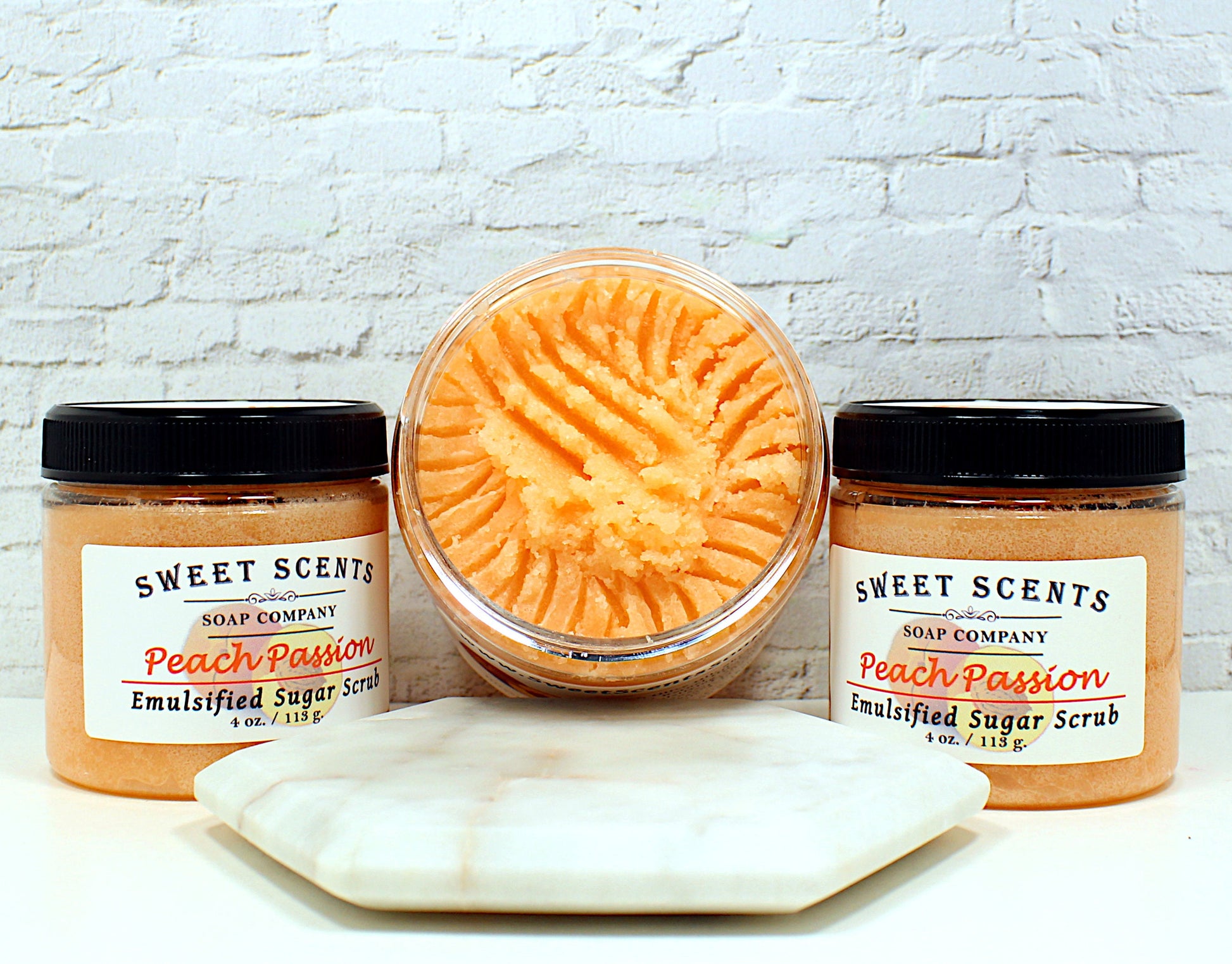 Our Peach Passion Scrub is available in both 4 ounce and 8 ounce sizes. Please select the size when adding to your cart.
