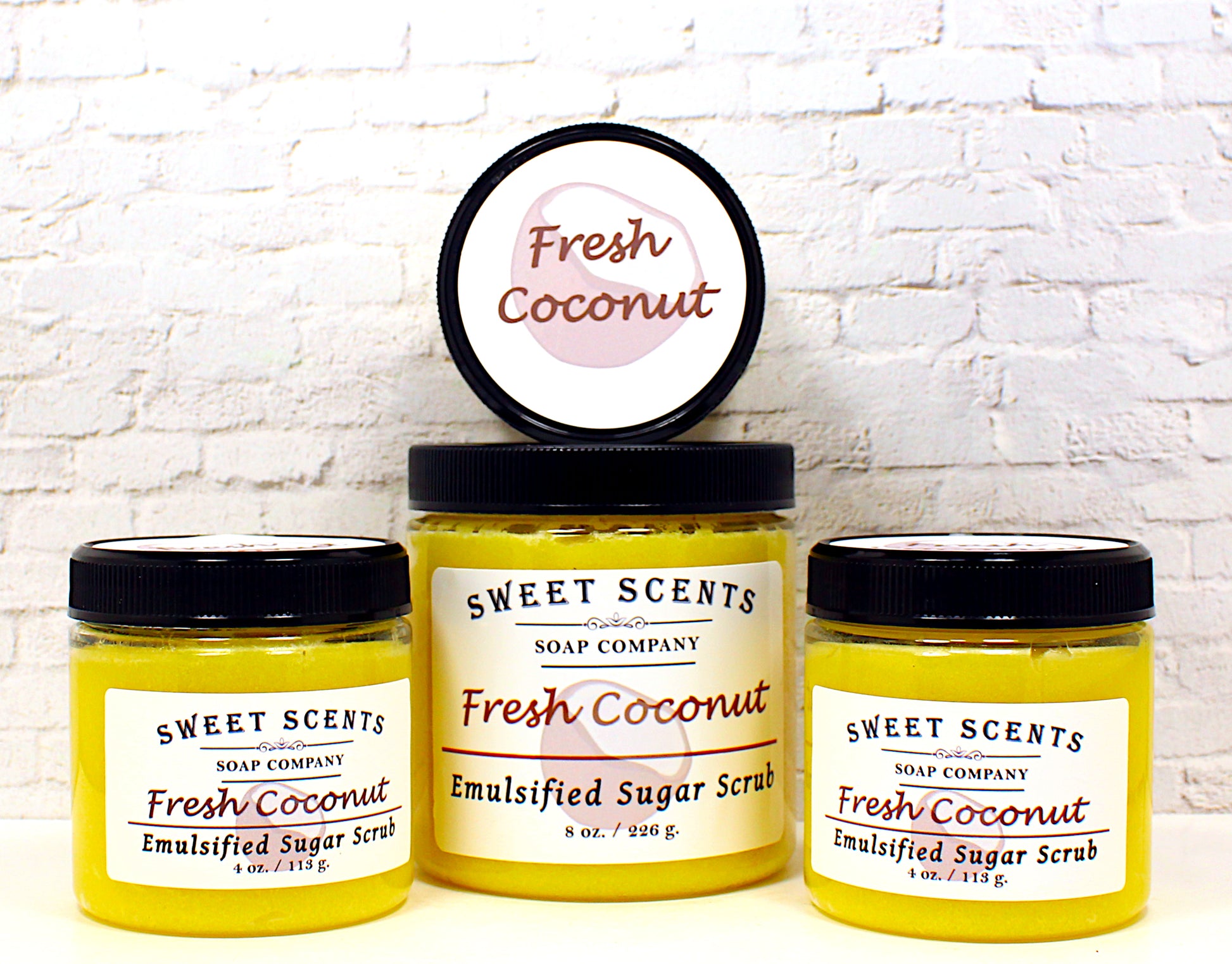 Our Fresh Coconut Scrub is available in both 4 ounce and 8 ounce sizes. Please select the size when adding to your cart.